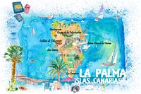 La Palma geïllustreerde reiskaart met wegen en hoogtepunten