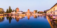 Ponts enveloppen en spervuur Vauban in La Petite France in de avond, Straatsburg, Frankrijk.