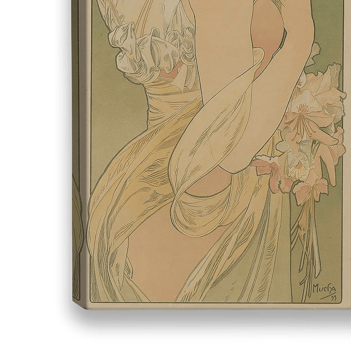 Koop La Primevere, Alphonse Mucha als reproductie op canvas, aluminium dibond, (ingelijste) fotoprint, behang en ArtFrame, op maat geprint in Fine-Art kwaliteit.