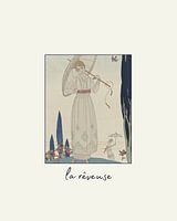 Een historische mode prent in een modern jasje: “faux”. Geïnspireerd door de Art Deco, een stijlbeweging die opkwam in de jaren twintig van de vorige eeuw. Nieuw zakelijkheid gemengd met moderne strakke lijnen en kleuren.