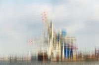 Laadkranen in containerterminal haven Hamburg abstracte meervoudige belichting als collage beeldende kunst