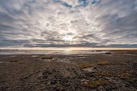Voor deze compositie heb ik bewust gekozen voor een lage horizon, zodat de uitgestrekte lucht de hoofdrol krijgt. De gelaagde wolken en het zachte licht trekken je blik langzaam het beeld in, terwijl de ruwe voorgrond van slik, stenen en gras zorgt voor aardse tegenwicht. Die combinatie van leegte en detail, van rust en textuur,…