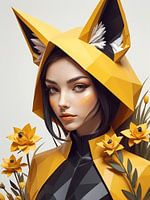 Laagpoly gebloemd vossenmeisje, zwart en geel van 1xMerch