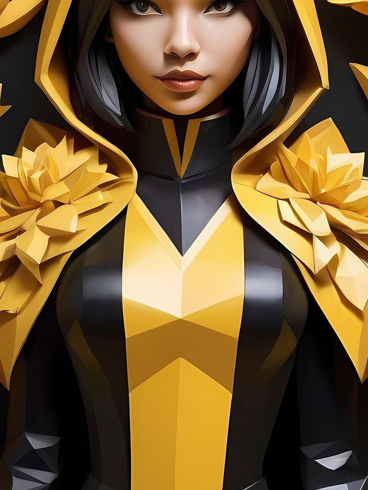 Laagpoly gebloemd vossenmeisje, zwart en geel