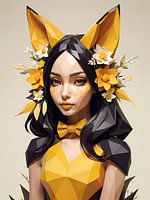 Laagpoly gebloemd vossenmeisje, zwart en geel van 1xMerch