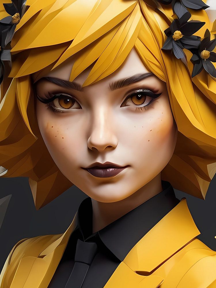 Laagpoly gebloemd vossenmeisje, zwart en geel