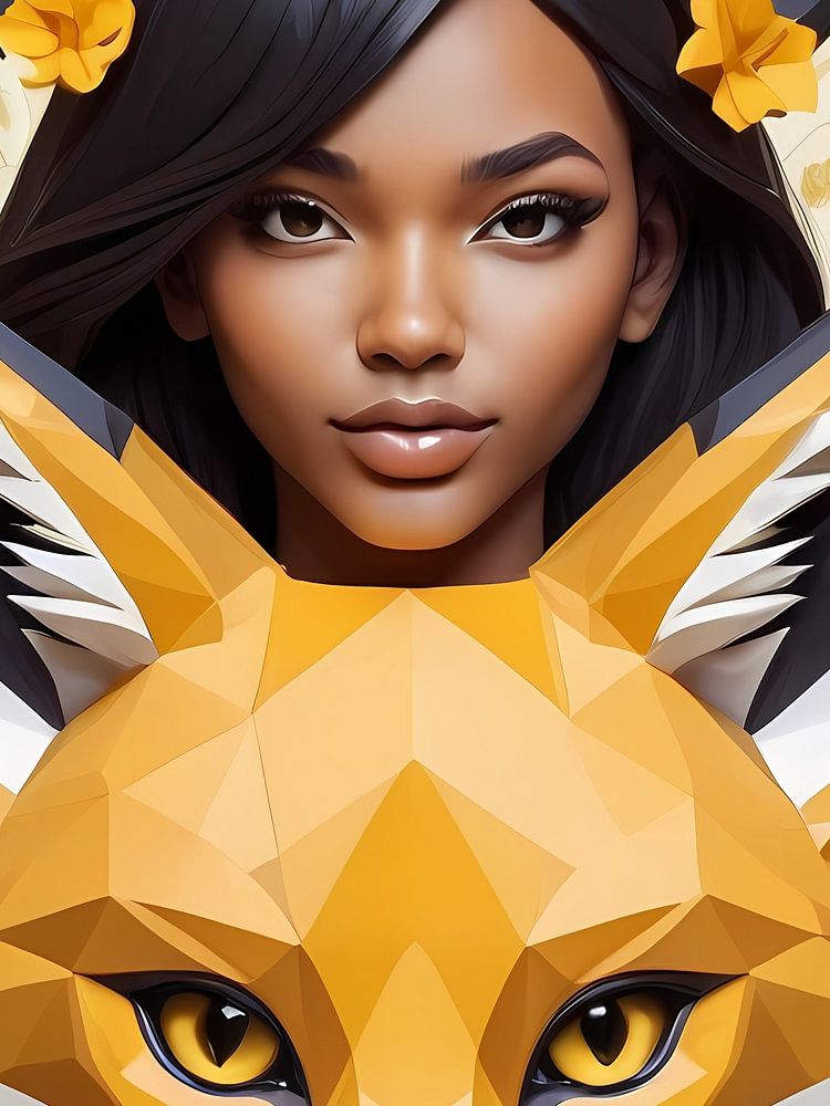 Laagpoly gebloemd vossenmeisje, zwart en geel