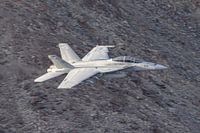 Laagvliegende U.S. Navy Boeing F/A-18F Super Hornet.