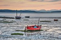 Bij eb valt een groot deel van de baai van Morecambe aan de Engelse westkust droog. Vissersboten liggen op het wad te wachten op de vloed. Op de achtergrond zien we de bergen van het Lake District.