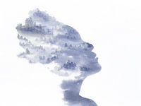 Tijdens het maken van dit schilderij, wilde ik graag het beeld creëren dat de wind langs haar gezicht waait en alles wat haar hoofd vult, weg waait. Wat daar voor terug komt is rust. De bomen en de opkomende mist ertussen symboliseert die rust. De rust die velen van ons in de natuur vinden. Wandelen door de bossen. De geur van de bomen. Even alles vergeten, alleen bezig zijn met de ene stap voor de volgende zetten.