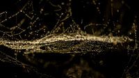 Alsof het een kroonluchter is, dit spinnenweb waar in de de waterdruppels schitteren in het zonlicht.