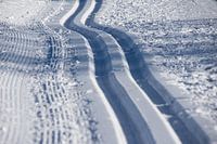 Close-up van een langlaufloipe. Een typisch sneeuw- of wintermotief. Deze foto is geschikt als wanddecoratie in de vorm van een muurschildering of poster, als behang of fotobehang op kantoor, thuis en in ruimten met veel publiek, zoals wachtkamer of praktijk.