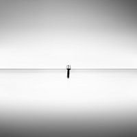 Industrieel platform op zee. Zwart-wit long expsoure foto. Piombino, Toscane, Italië (2008)