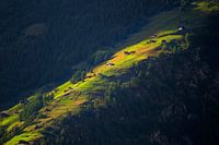 Koop de foto Laatste zonnestralen op bergweide van Menno Boermans als print op canvas, aluminium dibond, (ingelijste) fotoprint, behang en ArtFrame. Voor jou op maat geprint in Fine-Art kwaliteit.