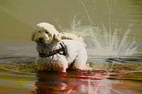 Koop dit moderne kunstwerk Labradoodle in het water van Rietje Bulthuis op canvas, aluminium dibond, (ingelijste) fotoprint, behang en ArtFrame, op maat geprint in Fine-Art kwaliteit.