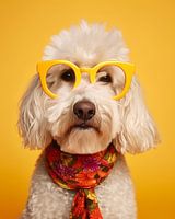 Labradoodle love: humoristisch digital art portret van een Labradoodle. Met dit werk vrolijk je iedere muur op. Je krijgt vanzelf een glimlach als je dit werk ziet :-)