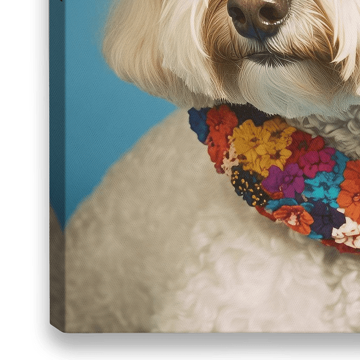 Labradoodle love: humoristisch digital art portret van een Labradoodle. Met dit werk vrolijk je iedere muur op. Je krijgt vanzelf een glimlach als je dit werk ziet :-)