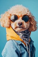 Met zijn schattige, pluizige vacht en coole zonnebril straalt deze Labradoodle pure nonchalance uit. De kleurrijke hoodie en modieuze sjaal geven hem een trendy look, terwijl zijn ondeugende blik de harten verovert. Een echt uniek stuk dat zowel stijl als charme uitstraalt!