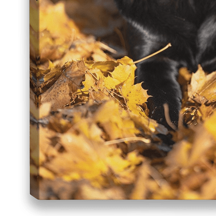 Zwarte Labrador in herfstbladeren