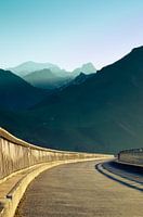De Barrage de Roselend in het Lac de Roselend met op de achtergrond de Mont-Blanc tijdens zonsopkomst.