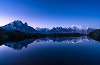 Een vroege ochtend aan het beroemde Lac des Cheserys, met o.a. de Mont Blanc en de sterrenhemel gereflecteerd in het meer.