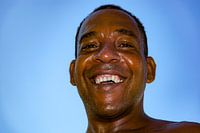 Lachende jonge man die geen moeite met de camera lijkt te hebben