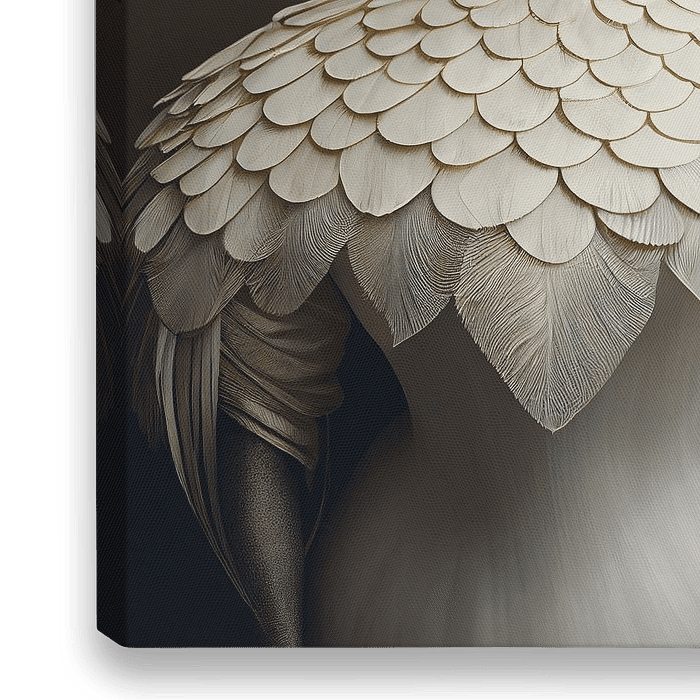 Ze draagt haar veren als een avondjapon, compleet met hoofdtooi, klasse en stijl.