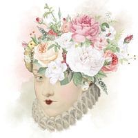 Portret van een vrouw van adel, getooid met een stilleven van prachtige rozen.