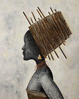 Abstract profiel van een vrouw met hoed. Deels gemaakt met modelling paste en stokjes om structuur te geven. Is one of a set of two.