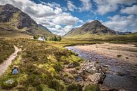Lagangarbh Hut aan de Coupall rivier met Stob Coire Raineach (925 m), Glencoe, Hooglanden, Schotland, Groot-Brittannië