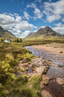 Lagangarbh Hut aan de Coupall rivier met Stob Coire Raineach (925 m), Glencoe, Hooglanden, Schotland, Groot-Brittannië