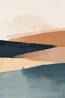 Een harmonieus abstract schilderij van brede, gestructureerde penseelstreken die warme aardse kleuren combineren met diep blauw. De kalme, horizontale beweging creëert een sfeer van evenwicht en sereniteit.