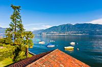 Uitzicht vanuit Vira over het Lago Maggiore, Gambarogno, Ticino, Zwitserland.