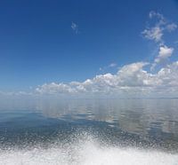 Zoetwatermeer in Nicaragua. Weerspiegeling van blauwe lucht met wolken in het water van Lago Nicaragua.