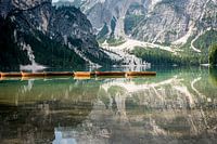 landschapsfoto met reflecties op de Lago di Braies in de Dolomieten, Italië