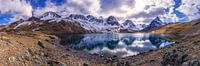 De foto is genomen kort na zonsopgang bij de Laguna Chiar Khota in de Cordillera Real in Bolivia.