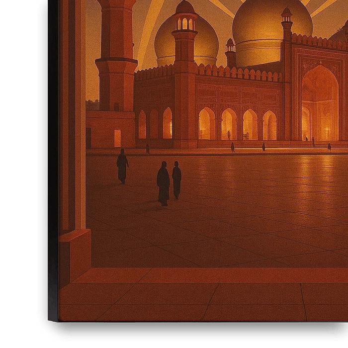 Koop dit landschapskunstwerk Lahore Badshahi Moskee Vintage Poster - Mughal Architectuur Kunstdruk van Travel Shop op canvas, aluminium dibond, (ingelijste) fotoprint, behang en ArtFrame, op maat geprint in Fine-Art kwaliteit.