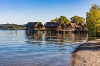Lake dwellings in het Lake Dwelling Museum Unteruhldingen in Uhldingen-Mühlhofen aan het Bodenmeer, Baden-Württemberg, Duitsland.