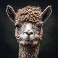 De bruintinten in de vacht van de lama worden prachtig gecombineerd met subtiele accenten van crème, grijs en zwart, wat zorgt voor een levendig maar tegelijkertijd rustig geheel. De achtergrond is bewust neutraal gehouden, zodat de aandacht volledig uitgaat naar het dier zelf. De zachte overgangen in licht en schaduw geven het portret diepte en maken het tot een visueel aantrekkelijk kunstwerk.