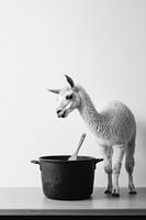 Een charmant, ondeugend lammetje, nieuwsgierig gebogen over een zwarte kookpot, brengt de kamer tot leven met zijn speelse houding. Het harmonieuze zwart-witte ontwerp en de grillige inhoud voegen een vleugje humor en creativiteit toe aan de keuken. Ideaal om gezellige kookavonden te vieren en een gespreksonderwerp te creëren!