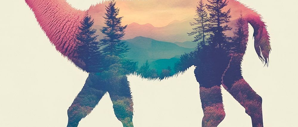 Een harmonieus samenspel van natuur en dieren ontvouwt zich in deze betoverende voorstelling. De zachte kleuren en het silhouet van een lama, gevuld met majestueuze bomen en een dromerige lucht, brengen een rustgevende stemming. Perfect voor een woonkamer, roept het een gevoel van vrijheid en verbondenheid met de natuur op.