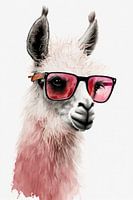 Deze poster bevat een gedetailleerde zwart-wittekening van een lama met een opvallende roze zonnebril. De afbeelding heeft een roze flair en bevat subtiele waterverfdruppels in roze en rode tinten. Helder, gedurfd en kleurrijk, deze kunstdruk brengt een funky splash van kleur in elke kamer. Het leuke dierenmotief in een cool bril/zonnebrilontwerp tovert zeker een glimlach op elk gezicht en fleurt een modern interieur op. Een perfecte blikvanger voor iedereen die van unieke en opvallende decoratie houdt.
