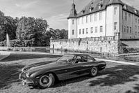 Lamborghini 350 GT Prototype 400 / Coupe Touring klassieke sportwagen in zwart en wit voor Schloss Dyck. De 350 GT had een V12-motor van aluminiumlegering, gekoppeld aan een handgeschakelde ZF-transmissie met vijf versnellingen. Hij had een aluminium carrosserie van Carrozzeria Touring. De eerste klantlevering van een 350 GT was deze nr. 104. Lamborghini produceerde honderd twintig 350 GT's.