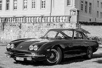 Lamborghini 350 GT Prototype 400 / Coupe Touring klassieke sportwagen in zwart en wit voor Schloss Dyck. De 350 GT had een V12-motor van aluminiumlegering, gekoppeld aan een handgeschakelde ZF-transmissie met vijf versnellingen. Hij had een aluminium carrosserie van Carrozzeria Touring. De eerste klantlevering van een 350 GT was deze nr. 104. Lamborghini produceerde honderd twintig 350 GT's.