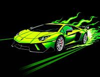 De groene Lamborghini Aventador