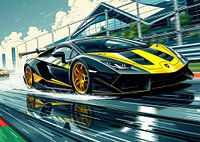 De Lamborghini Centenario illustratie toont een verbluffende, gestroomlijnde hypercar met scherpe, agressieve lijnen en futuristische styling. De aerodynamische carrosserie heeft gedurfde hoekige vormen, een prominente grille en een lage houding. Het opvallende design van de auto wordt geaccentueerd door scherpe LED-koplampen, brede wielkasten en een achtervleugel voor meer downforce. Dit alles toont Lamborghini's kenmerkende mix van luxe en prestaties.