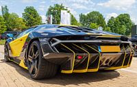 Deze 2.2 miljoen euro kostende Centenario is één van de slechts 20 gebouwde exemplaren in coupévorm en de eigenaar heeft de Lambo in een unieke zwart-gele kleurstelling laten spuiten.