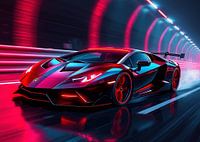 De Lamborghini Sesto Elemento is een buitengewone fusie van geavanceerd design en technisch kunnen. Zijn aërodynamische silhouet, gehuld in een gestroomlijnde zwarte metallic afwerking, straalt kracht en elegantie uit. De opvallende rode neonaccenten verlichten de contouren van de auto en creëren een betoverend contrast dat de futuristische aantrekkingskracht versterkt. Met een lichtgewicht koolstofvezelstructuur en een brullende V10-motor is de Sesto Elemento niet alleen een visueel meesterwerk, maar ook een prestatiebeest. Zijn aanwezigheid in een neonatmosfeer maakt hem tot een icoon van luxe en snelheid.