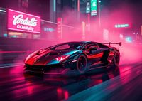 De Lamborghini Sesto Elemento is een buitengewone fusie van geavanceerd design en technisch kunnen. Zijn aërodynamische silhouet, gehuld in een gestroomlijnde zwarte metallic afwerking, straalt kracht en elegantie uit. De opvallende rode neonaccenten verlichten de contouren van de auto en creëren een betoverend contrast dat de futuristische aantrekkingskracht versterkt. Met een lichtgewicht koolstofvezelstructuur en een brullende V10-motor is de Sesto Elemento niet alleen een visueel meesterwerk, maar ook een prestatiebeest. Zijn aanwezigheid in een neonatmosfeer maakt hem tot een icoon van luxe en snelheid.