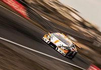 Lamborghini die op de heuvel omhoog komt met een flinke snelheid, er zit veel snelheid in de foto. Mooie gele/goude tint